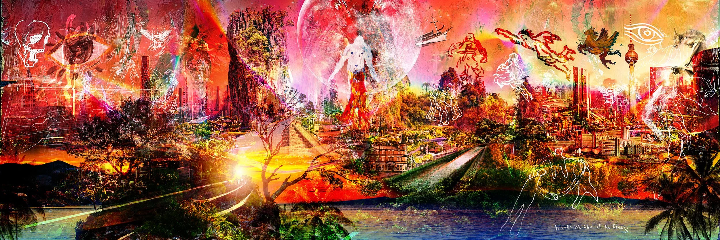 A series of collages created working with original paintings by Luke Hannam, illustrations by Luke UNA and stock images.